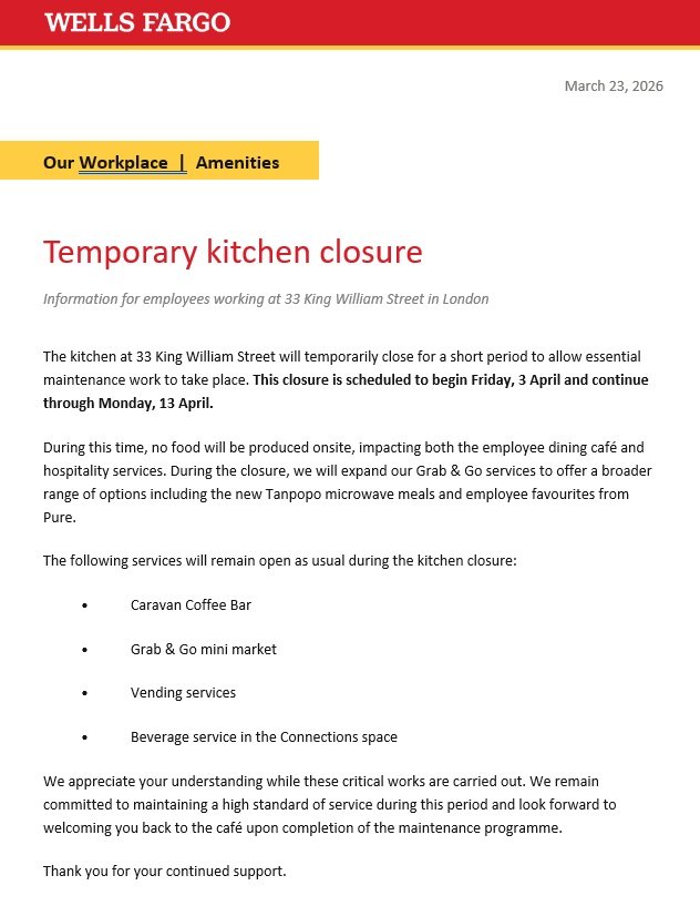 Level 9 at 33KWS is the home of all things food, drink and catering. Our services are available exclusively to the employees of 33 King William St.